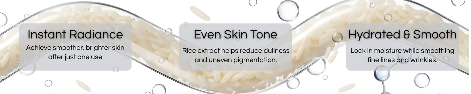 White Rice Formula: Targets brightness, refines texture, reduces whiteheads, and helps with pigmentation.